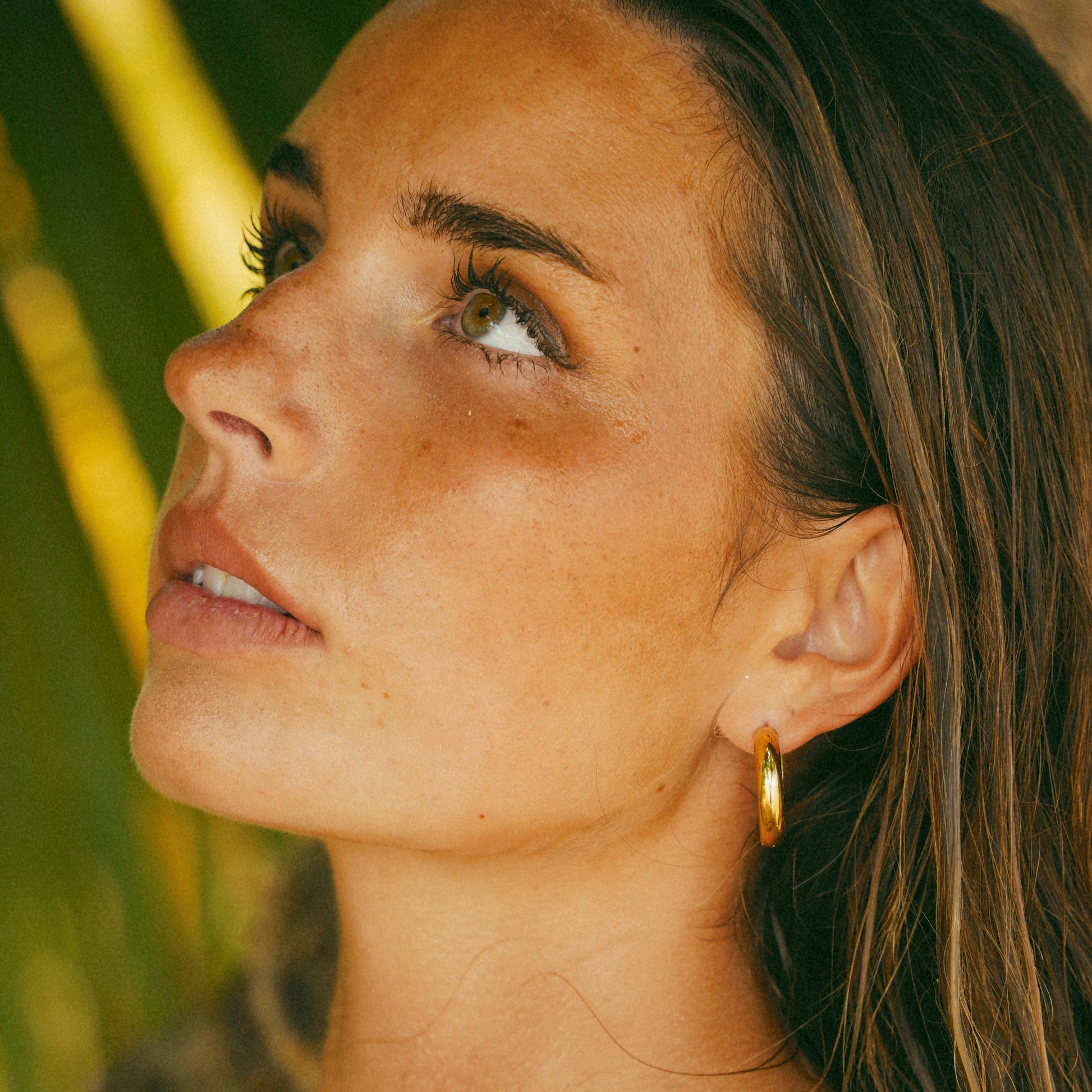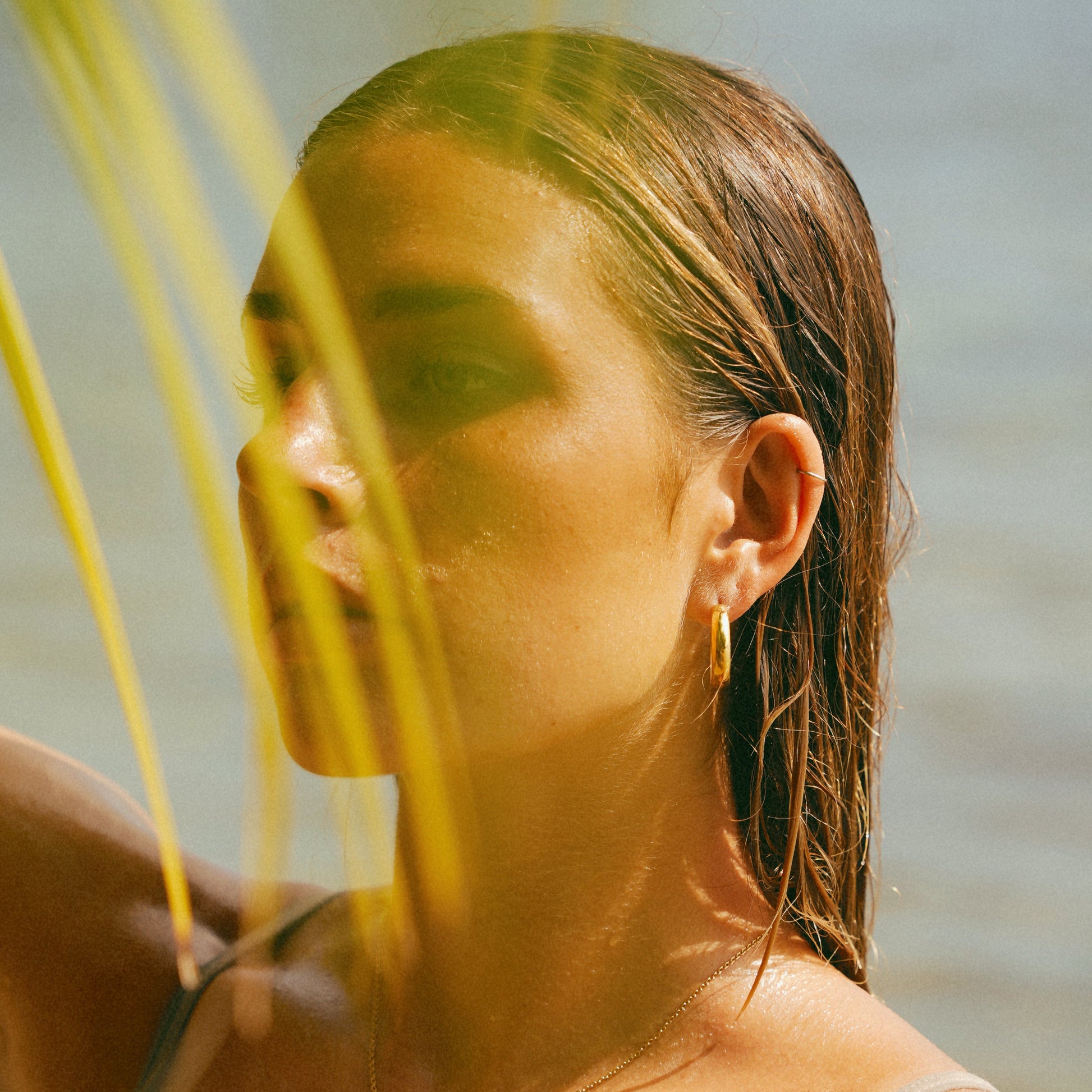Shower, swim, sweat — our jewelry stays golden through it all.