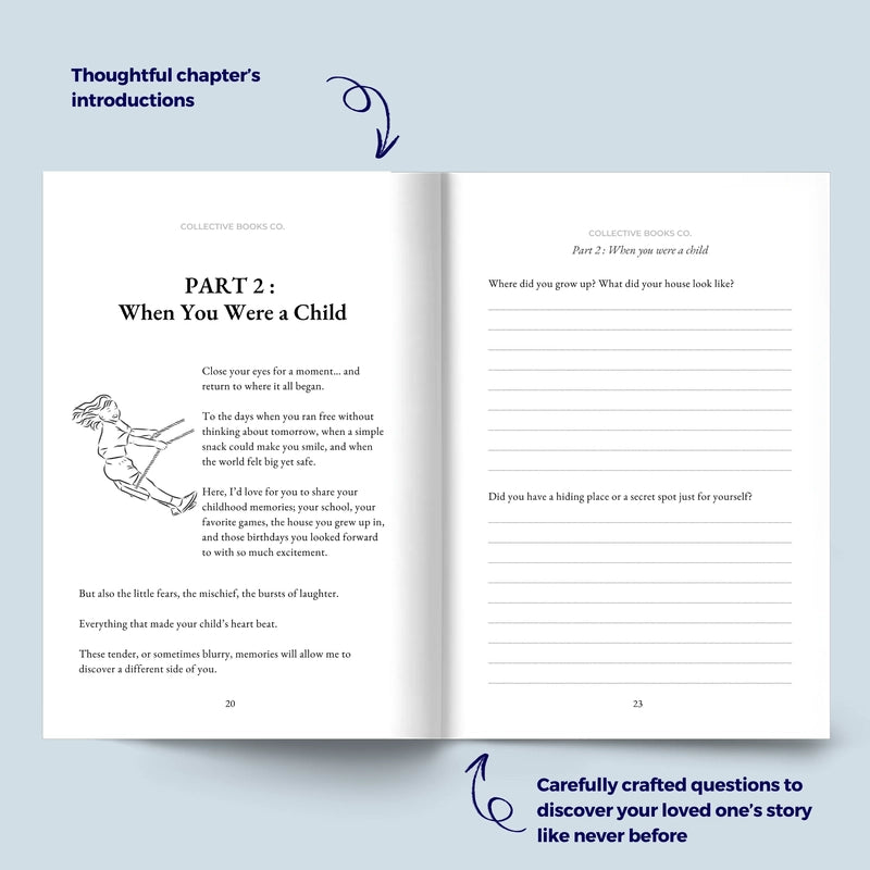 This journal is so much more than just a book. It’s an invitation to start the conversations we often postpone, to preserve memories before they fade away.